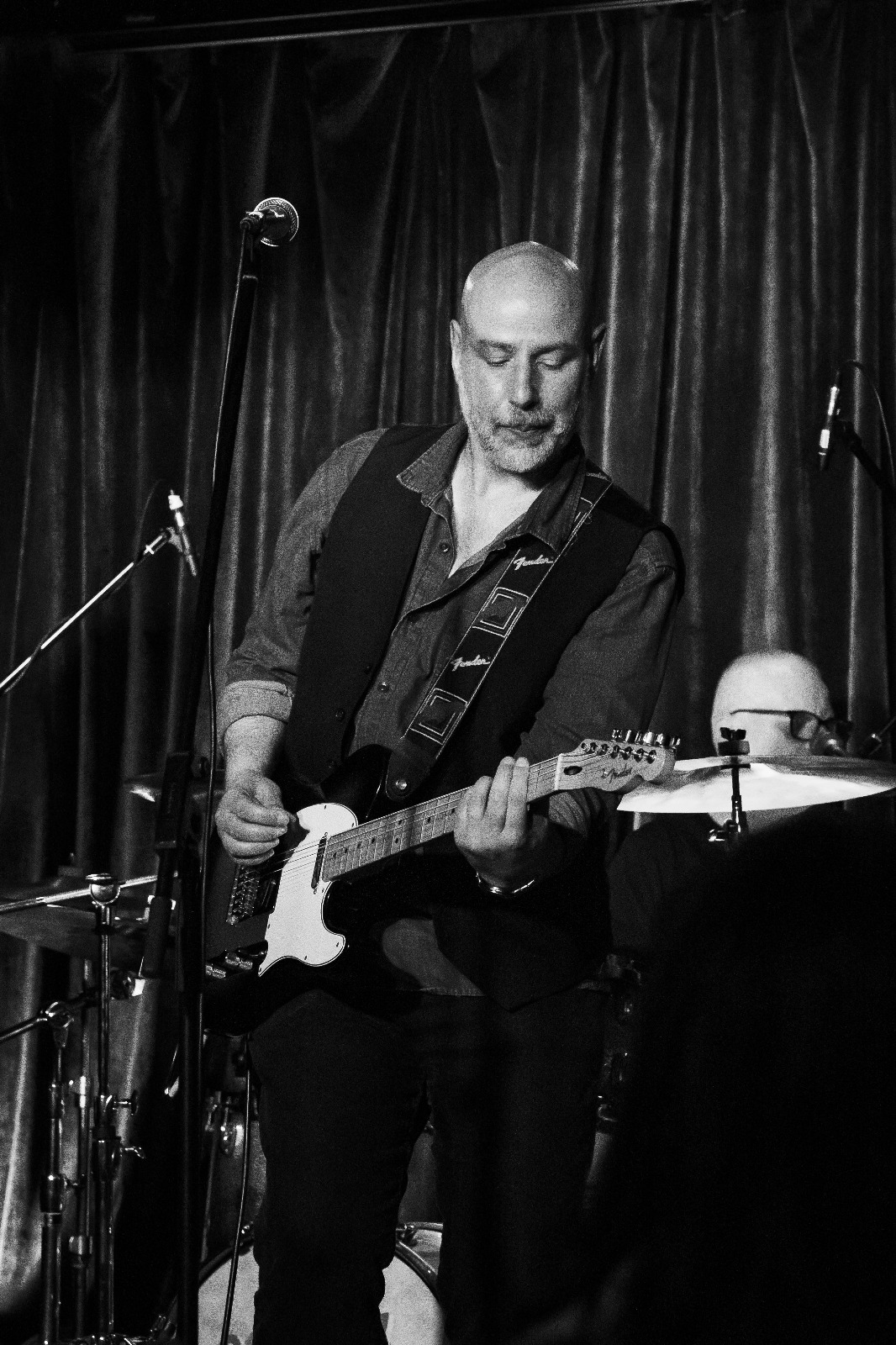 Masterful lead guitarist Jon Kershaw unveiled his first exuberant solo of the evening and followed up with a doo wop intro for ‘Good Intentions’ another SEB favourite. Mark Taylor’s drums drove this country tinged rocker while bass guitarist and vocalist Peter Wass sang along with Steve, before the geetar man wound up a staccato finale.